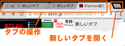 タブレットの場合、タブの管理はパソコンのようにそのままむき出しになっています。