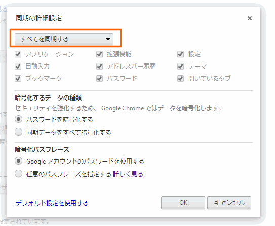 「すべてを同期する」になっていれば、ブックマークやパスワード、自動的に入力されるデータなどをパソコンとiPhoneのChromeで同期することができます。
