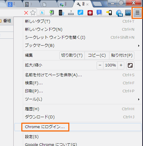 パソコンにもChromeをインストールしたら、右上に「三」の設定用のメニューボタンがあるので、クリック。