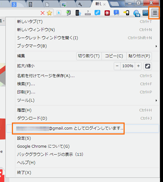 ログイン後(もしくは既にログインしている場合)は、メニューがこのようになっているので「~@gmail.comとしてログインしています」をクリックします。