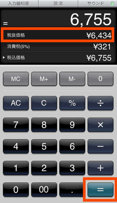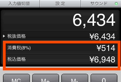 消費税が自由に変更でき、税込み、税抜き価格が簡単に切り替えられる、iPhoneの計算機を紹介します。