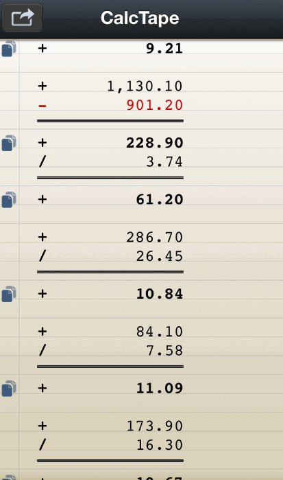 また、全く関係ない計算を新たに始めたい場合は、イコールボタンを2回タップすると、空白行が挿入され、新たな計算を始めることが出来ます。