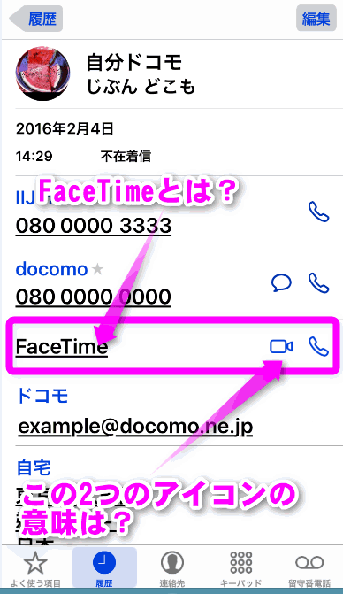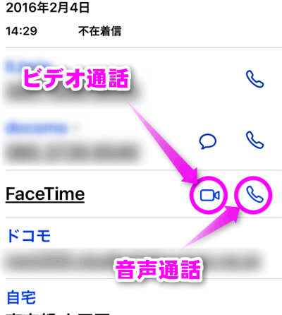 連絡先にこの「FaceTime」という項目がある場合、相手はiPhoneを使っています。