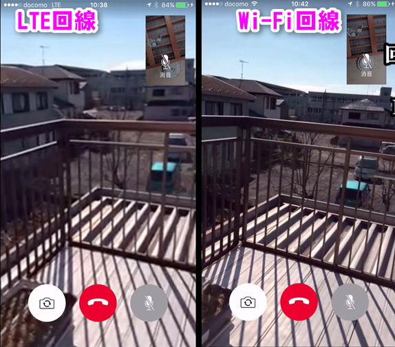 以下は、「携帯電話回線」と「Wi-Fi」を使用してFaceTimeを使った時の映像の比較です。