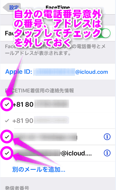 こうしたことを防ぐために、FaceTimeに使用するアドレスは、そのiPhoneの電話番号にしてください。