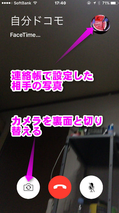 こちらが音声のみのFaceTimeをかけた時の画面です。