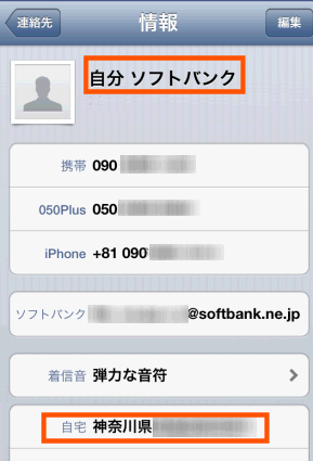 そしてその自分の連絡先に「自宅」と「勤務先」の住所を登録しておく必要があります。