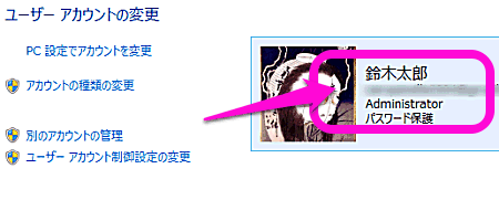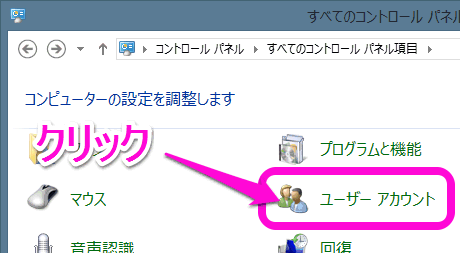 なお、Microsoftアカウントを変更したいときは、「コントロールパネル」の「ユーザーアカウント」をクリックし、