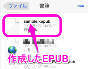iPhone側のOneDriveアプリで作成したEPUBファイルをタップします。