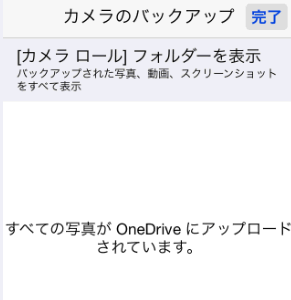 すべての写真がOneDriveにアップロードされています。という表示になったら、他のアプリを動作させてもOKです。