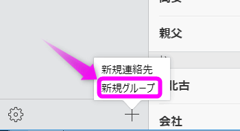 左下の「+」をクリックし、「新規グループ」をクリックします。