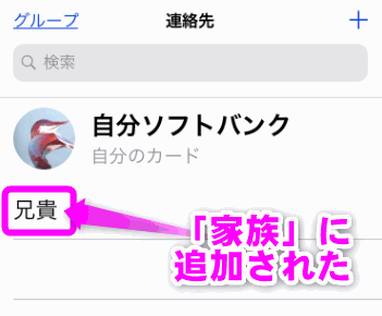すると「家族」のグループに登録した連絡先だけ表示されました。