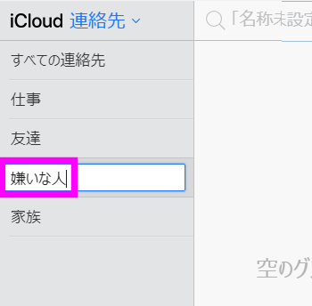 iPhoneの連絡先は「グループ」を使用できるのですが、残念ながら標準の連絡先ではグループを作成したり、グループにメンバーを追加したりすることができません。