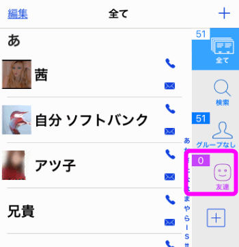 アプリで作成したグループは、すぐにiPhone標準の