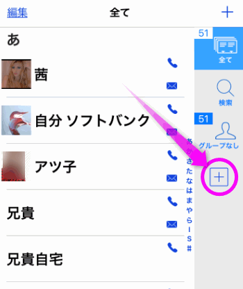 グループを作成するには左中央辺りにあるプラスのボタンをタップします。