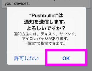 Pushbulletを使うには通知を許可してください、というような警告が表示されるので、OKをタップします。