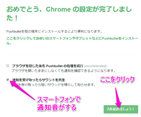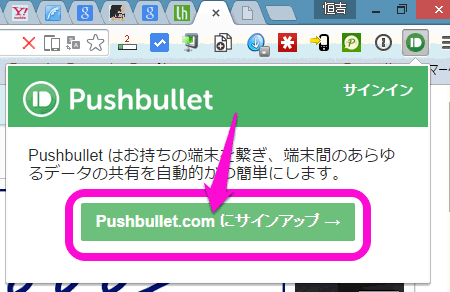 「 Pushbullet.comにサインアップ」という部分をクリックします。