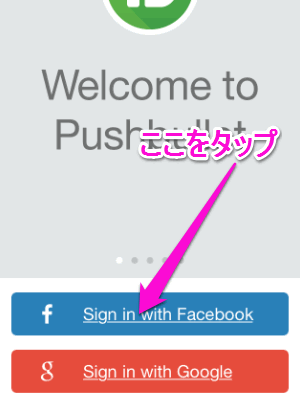 パソコン版と同じ方(Facebookかgoogle+)でログインします。