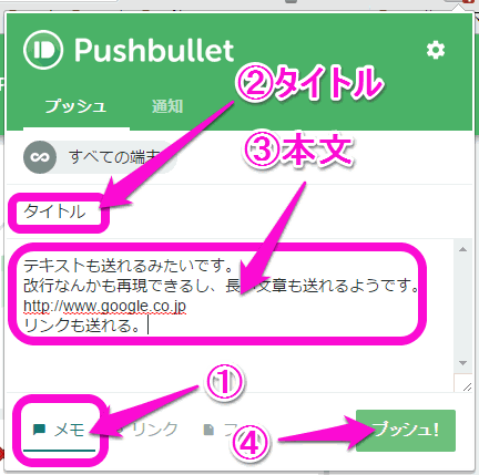 そこでパソコンで入力し、PushbulletでiPhoneに送信することも出来ます。