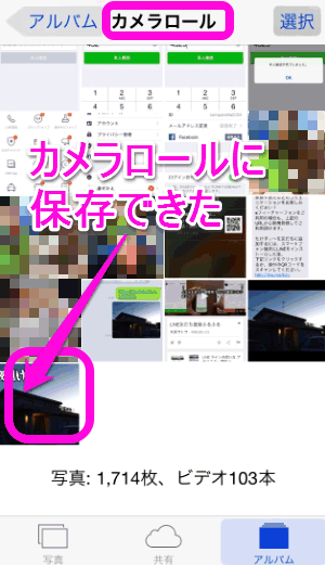 送られてきた画像を保存すると、「カメラロール」に保存されました。