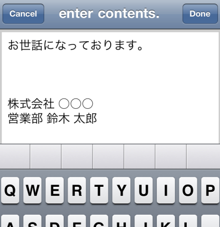 定型文を入力し終わったら右上の「Done」をタップします。