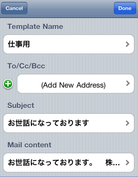 iPhoneで定型文でメールを出せるアプリ