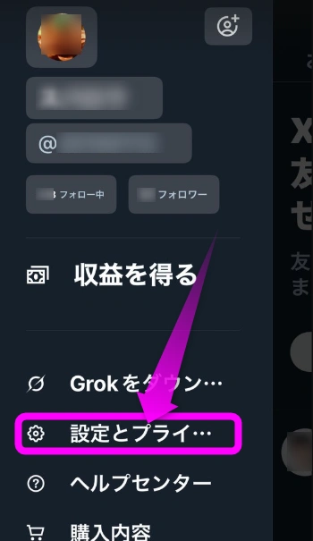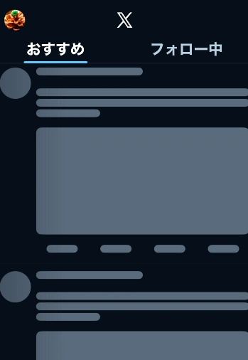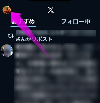 Xにログインした状態で、左上の自分のアカウントアイコンをタップします。