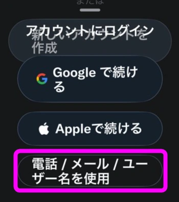 ここで「電話/メール/ユーザー名を使用」をタップしてください。
