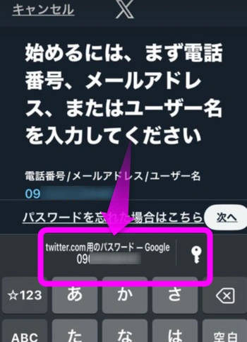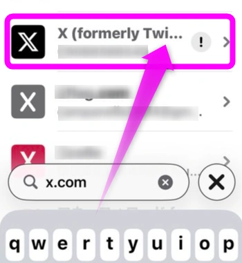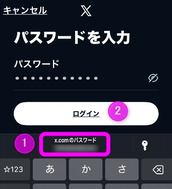 保存してあるXのパスワードのデータがヒットするので、ここをタップ。