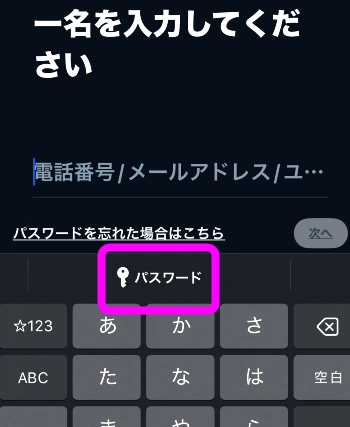 このように「パスワード」と鍵のアイコンだけだった場合は、XのIDとパスワードを登録する作業が必要です。