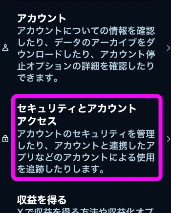 今度は「セキュリティキーとアカウントアクセス」をタップします。