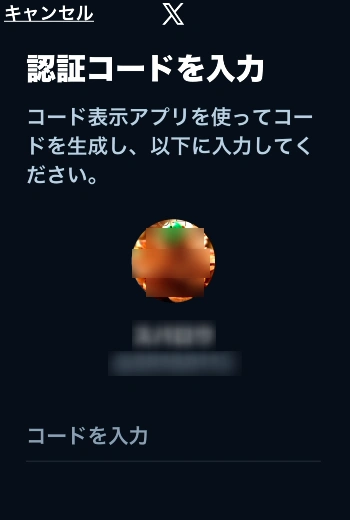 パスワード入力後、このような「認証コードを入力」という画面になりました。