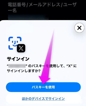 さて、パスキーをオンにしたら実際にパスキーでXにログインしてみましょう。