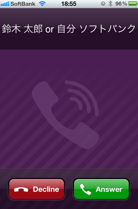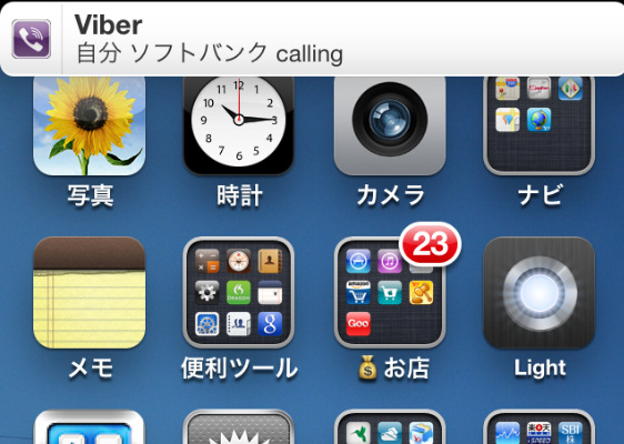 iPhoneを使用中にViberから電話がかかってくると、ワンコールだけ鳴って、画面の一番上に通知されました。