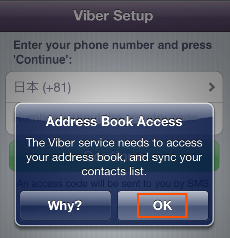 iPhoneの連絡帳にViberがアクセスしていいか、聞いてきます。