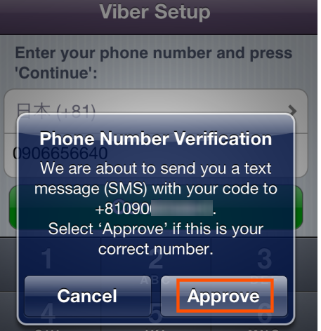 登録した電話番号にSMSを送っていいかどうか聞いてくるので「Approve(承認する)」をタップします。