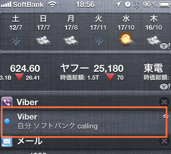 通知センターを引き出して、Viberの部分をタップすると・・・