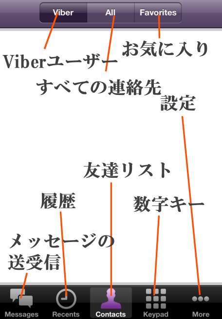 Viberの基本画面の紹介です。