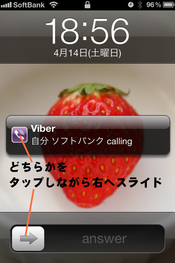 Viberのアイコンを右にスライドすると、電話にでることができます。