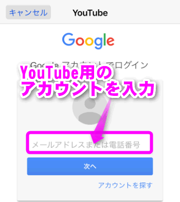 まだYouTubeにログインしていない場合は、Googleアカウントでログインします。