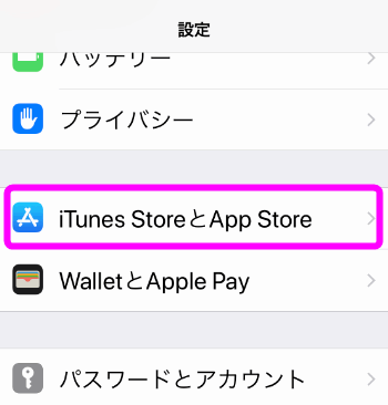 設定を開き、「iTunes StoreとApp Store」をタップします。