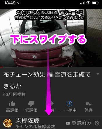動画のページから元に戻るには、上から下にスワイプ(指をスライドさせること)します。