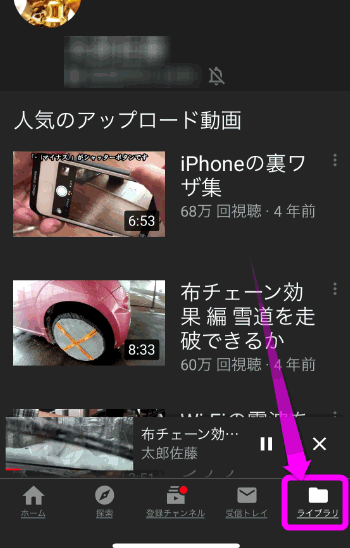 画面の右下に「ライブラリ」というボタンがあるので、ここをタップします。