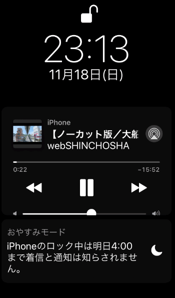 ロック画面を表示させると再生ボタンやスキップ、巻き戻し、音量調節のボタンが表示されました。