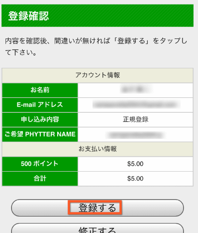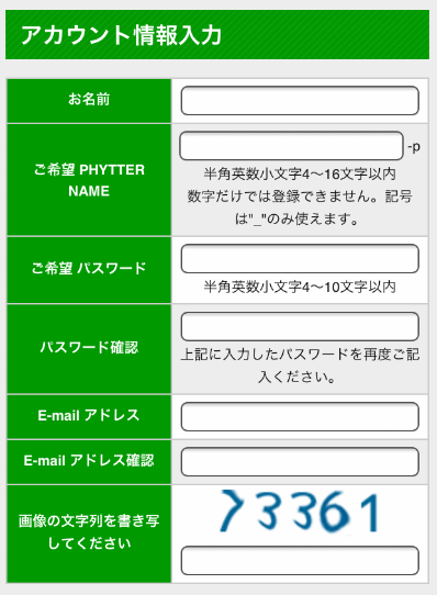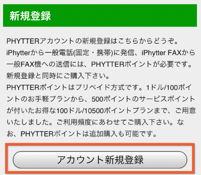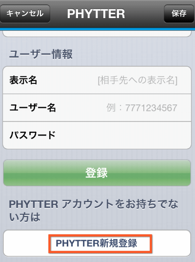 まだPHYTTERのアカウントを持っていない人は、「PHYTTER新規登録」をタップします。