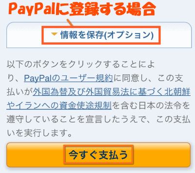 PayPalに登録する場合は、「情報を保存」をタップしてください。