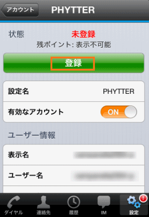 これで、(一応)iPhytterで電話がかけられるようになりました。