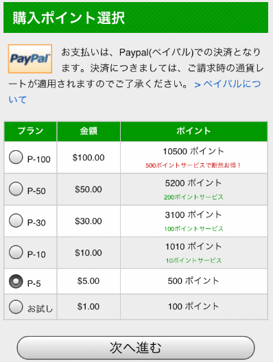 1ポイント0.1ドルなので、2013年4月現在で、1分約16円程度になります。