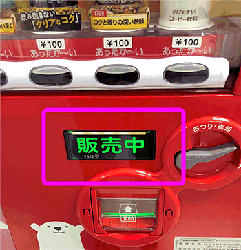 支払方法を選択します。現金で購入したい場合は、このままお金を投入してジュースを購入してください。