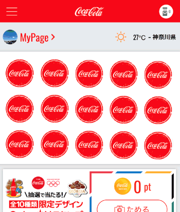 なおその下の「Coke ON IC 電子マネー設定」は、カードタイプのSuicaやWAON、nanacoなどを登録する場合です。ここに電子マネーカードを登録すると、そのカードを使って自動販売機でジュースを購入すると、自動でスタンプがたまる仕組みになっています。